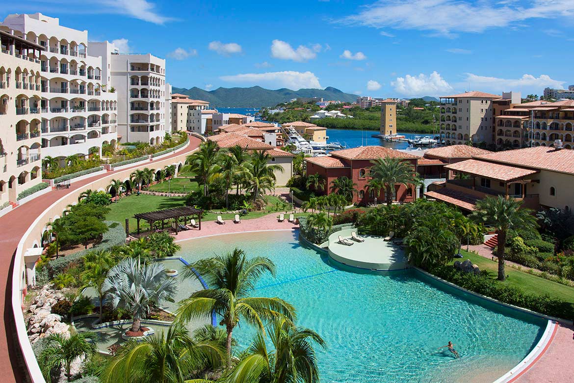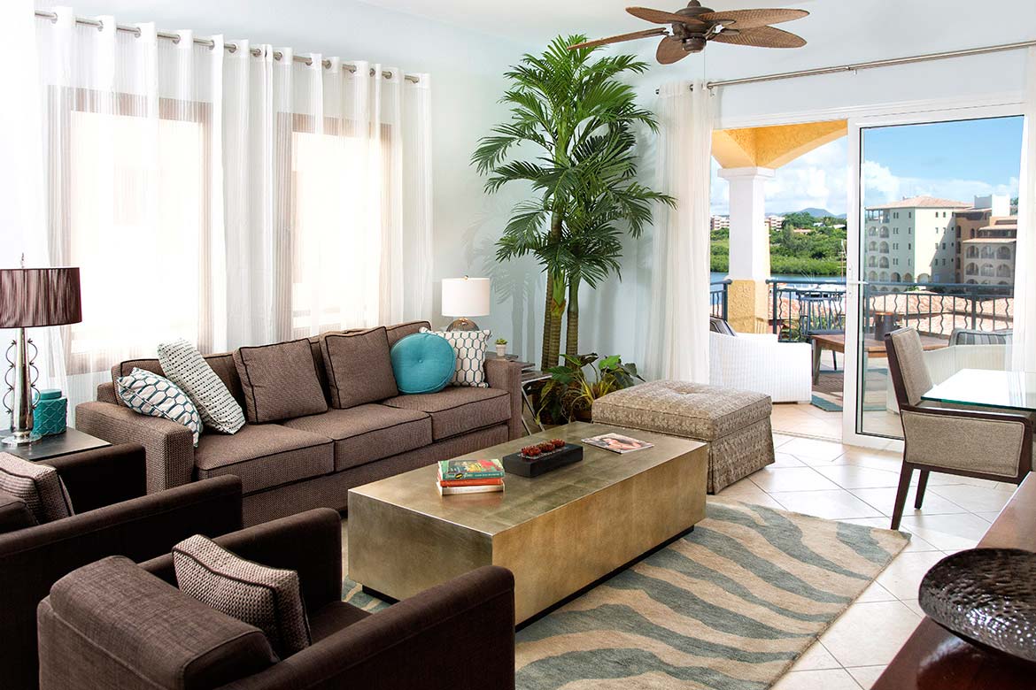 Agua Azul is a luxurious 2 bedroom, 2.5 bathroom condo with breathtaking views of the Caribbean Sea, Simpson Bay and Porto Cupecoy marina.