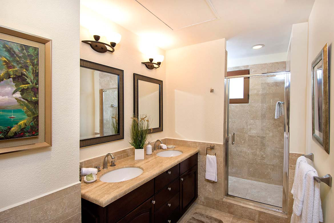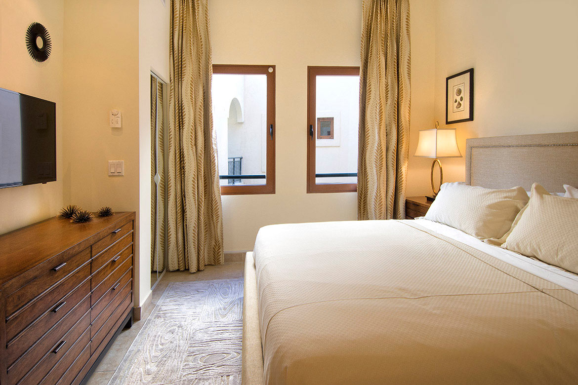 Two spacious bedrooms are very comfortable and offer privacy for everyone. Master Bedroom offers a king size bed, flat screen satellite box, big walk-in closet and en-suite bathroom with oversized deep soaking marble bathtub, separate marble rain shower, double vanity sinks and built in closets. This bedroom also opens directly onto a back terrace. Bedroom 2 offers a king size bed, flat screen TV, satellite box, closet space, and bathroom with shower, double vanity sinks and built in closets.