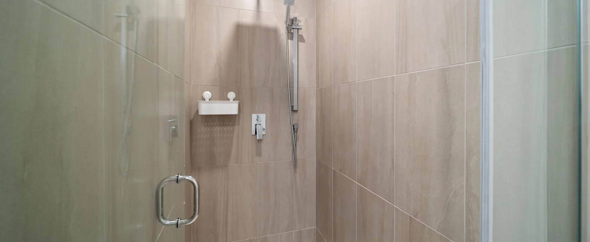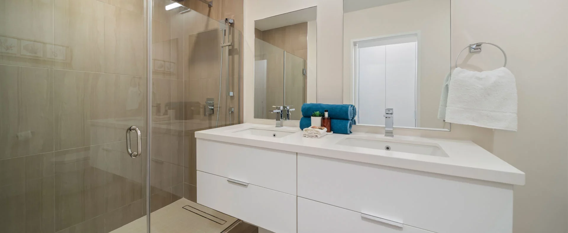 The second bedroom offers flexibility with a convertible double bed, ample storage space, and a stylish bathroom with a sleek shower.