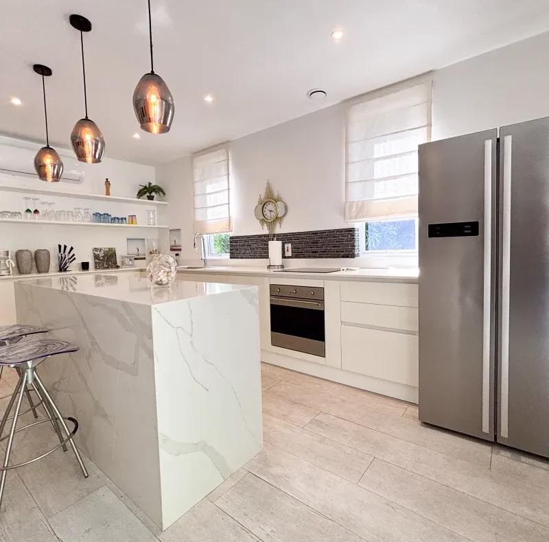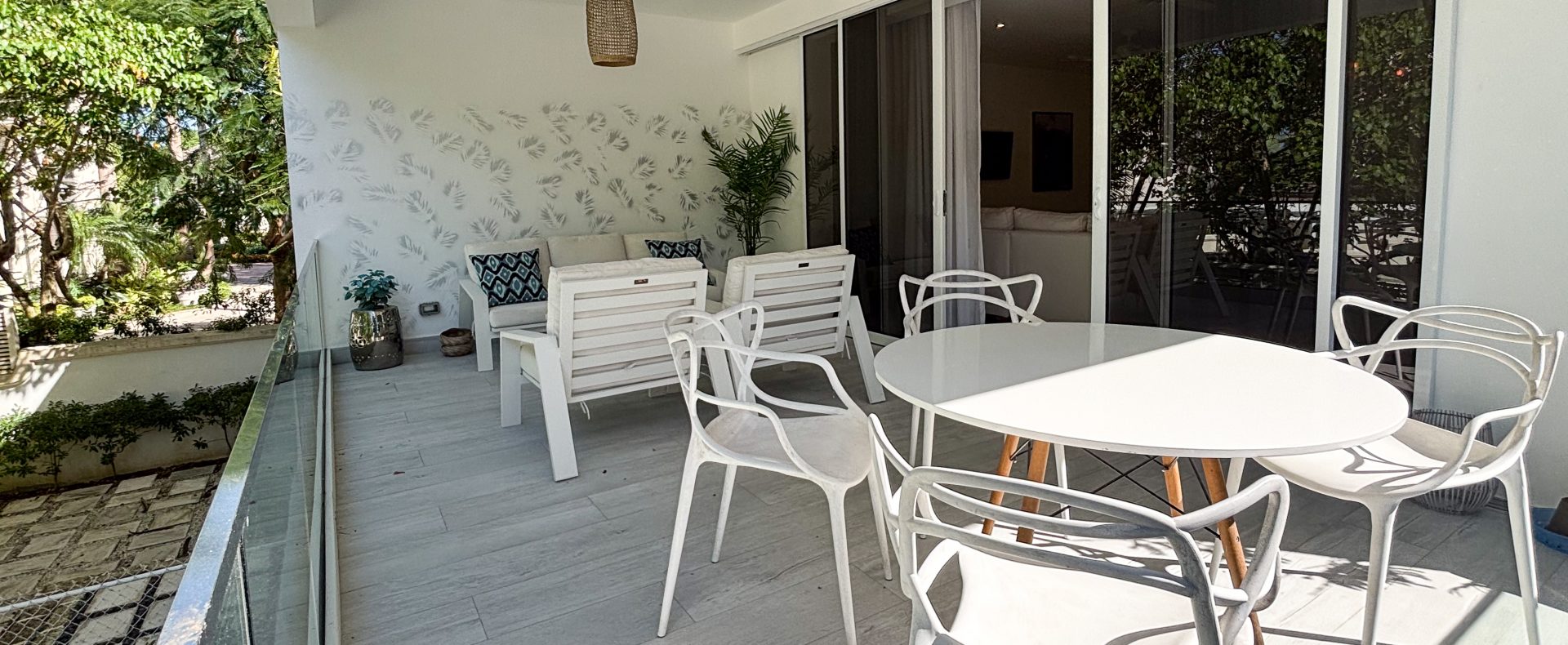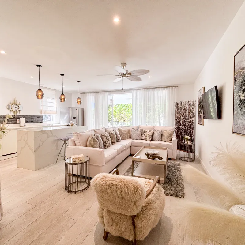 Apartment 3 is a beautifully designed 1,500 sq. ft. residence situated on the second floor. This stylish 2-bedroom, 2-bathroom home boasts a sleek open-plan kitchen fully equipped with modern appliances, and a generous covered terrace that seamlessly extends the living space for relaxed indoor-outdoor living.