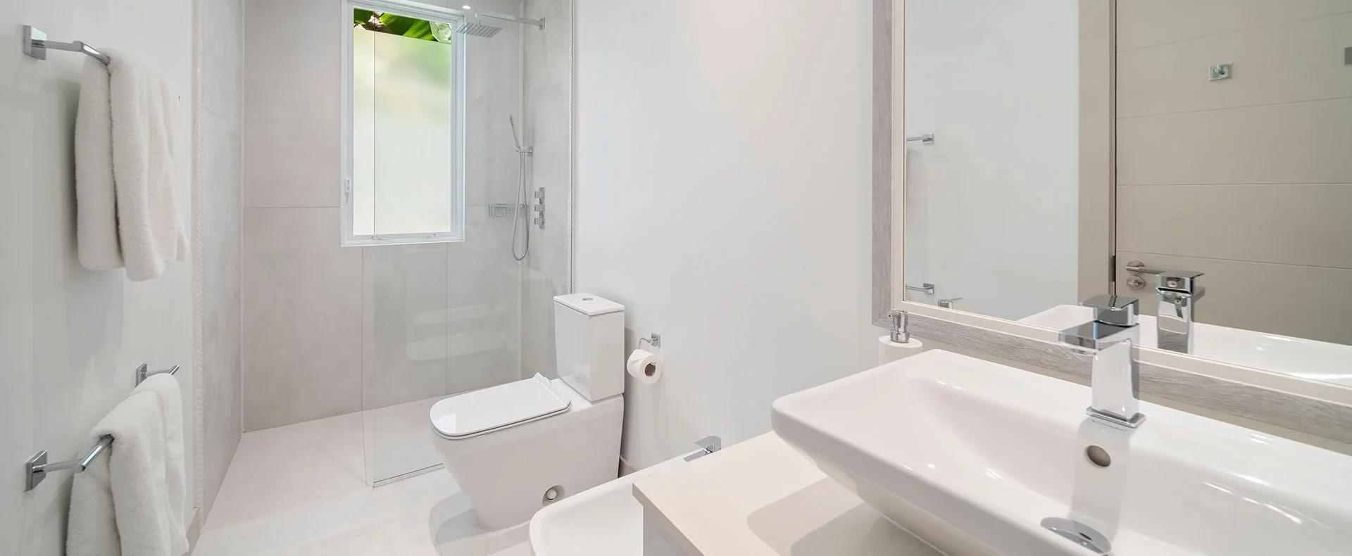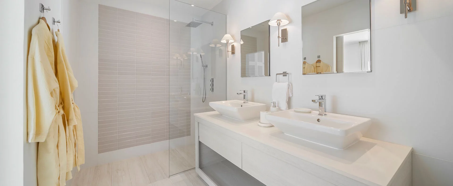 Master Suite: Your personal retreat with a king-size bed, direct access to the pool, a spacious closet, and a luxurious ensuite bathroom with a marble vanity and shower.
