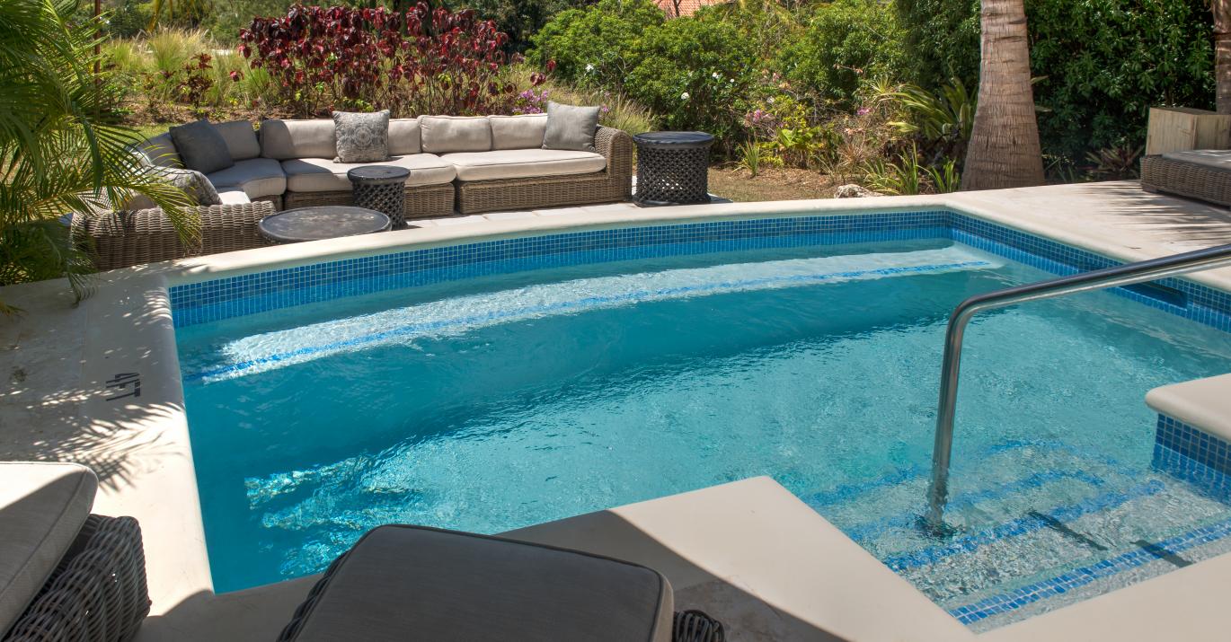 The glistening private plunge pool is the perfect spot to sunbathe or enjoy a cooling dip.