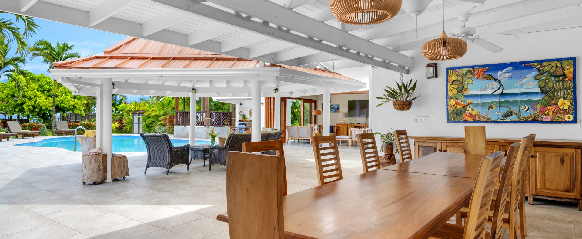 Brand new refurbishments the spacious villa now offers beautiful and very elegant interiors. Beachfront villa with private access to Cardiff Hall beach – one of the best beaches in Jamaica!