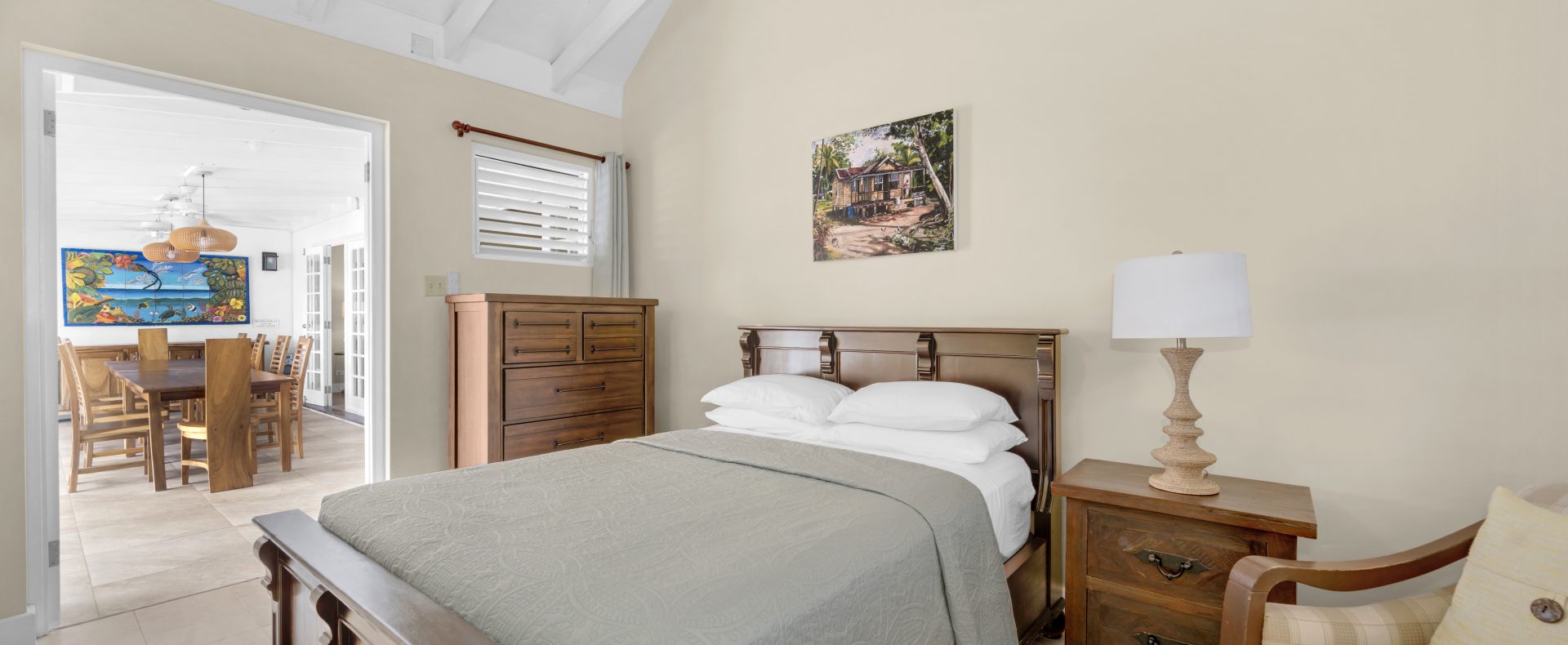 - Main house includes 4 bedrooms, 3 queen beds and one with two twin beds