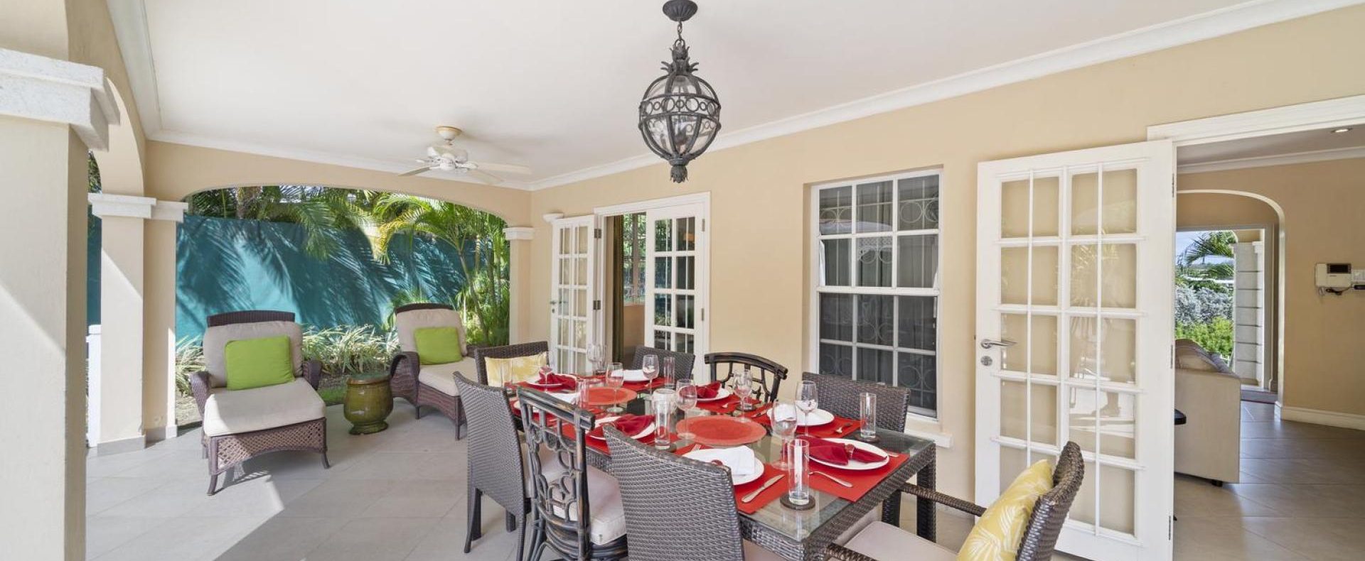 The master bedroom has a king size bed, two others have queen size beds, and one has two twin beds. Each bedroom is air conditioned and equipped with a safe for securing valuables. All the windows at Tara are screened so that if you prefer, you can enjoy the lovely Caribbean breeze wafting across Tara in the evenings. On the main level, double French doors open onto a lovely, covered patio, sundeck, and pool together with a covered gazebo area, perfect for relaxing during the day or enjoying a cocktail at sunset. Dining can be indoors or out with seating in the formal indoor dining room or outside under the covered patio next to the pool.