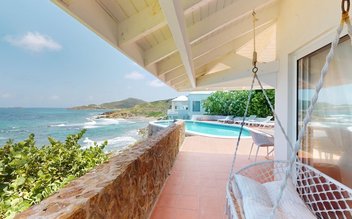 Perched dramatically on the cliffs of the exclusive Dawn Beach Estates, the Villa offers breathtaking views of the Atlantic Ocean and the silhouette of St. Barths in the distance.