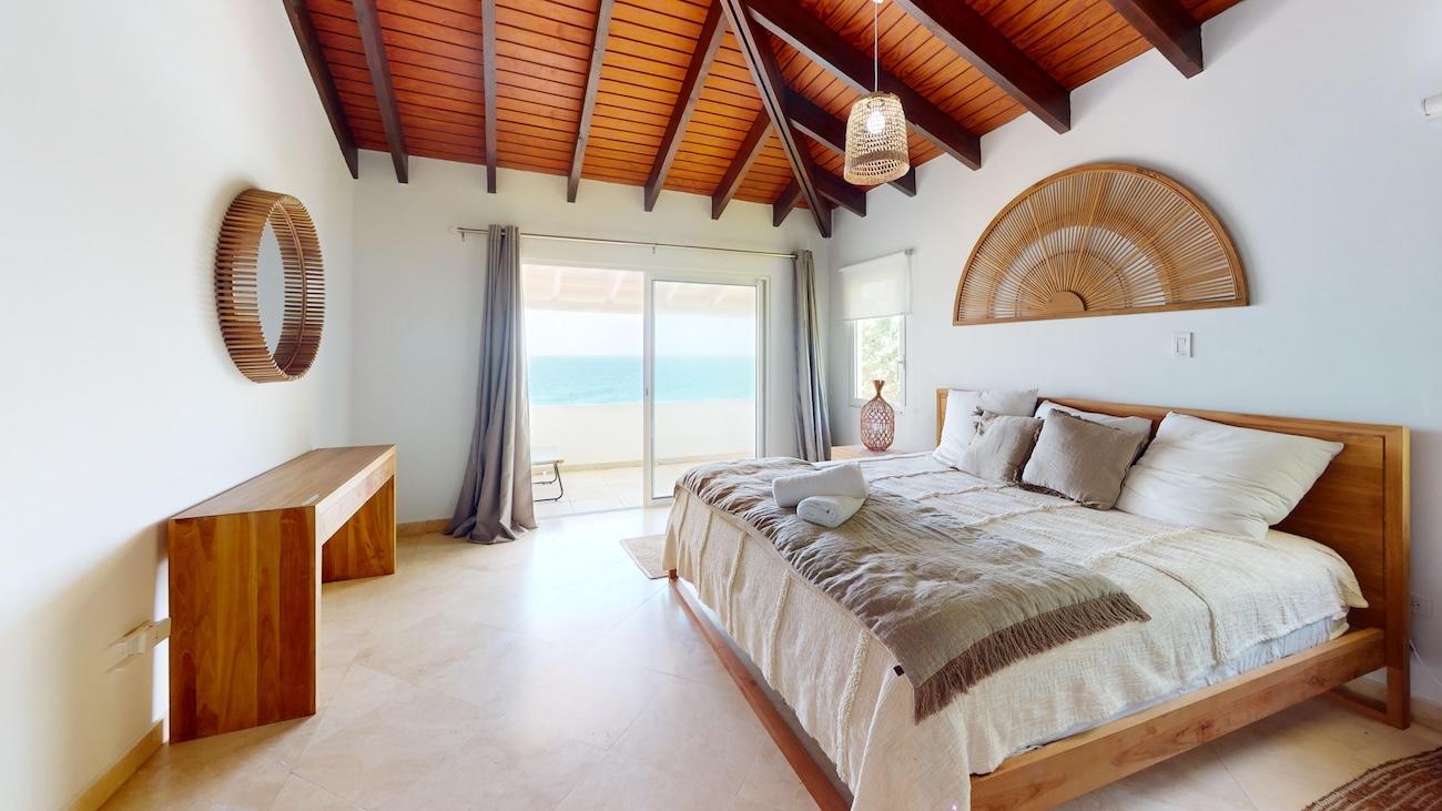This Mediterranean-style villa features 3 bedrooms and 3½ bathrooms, comfortably accommodating up to six guests. Every bedroom enjoys its own ensuite bathroom, air conditioning, ceiling fan, and private terrace overlooking the ocean